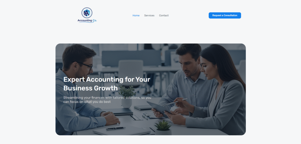 A modern, approachable web presence for small business accounting. Focused on user experience, the site simplifies complex financial data into clear, digestible sections that encourage visitor engagement and contact.